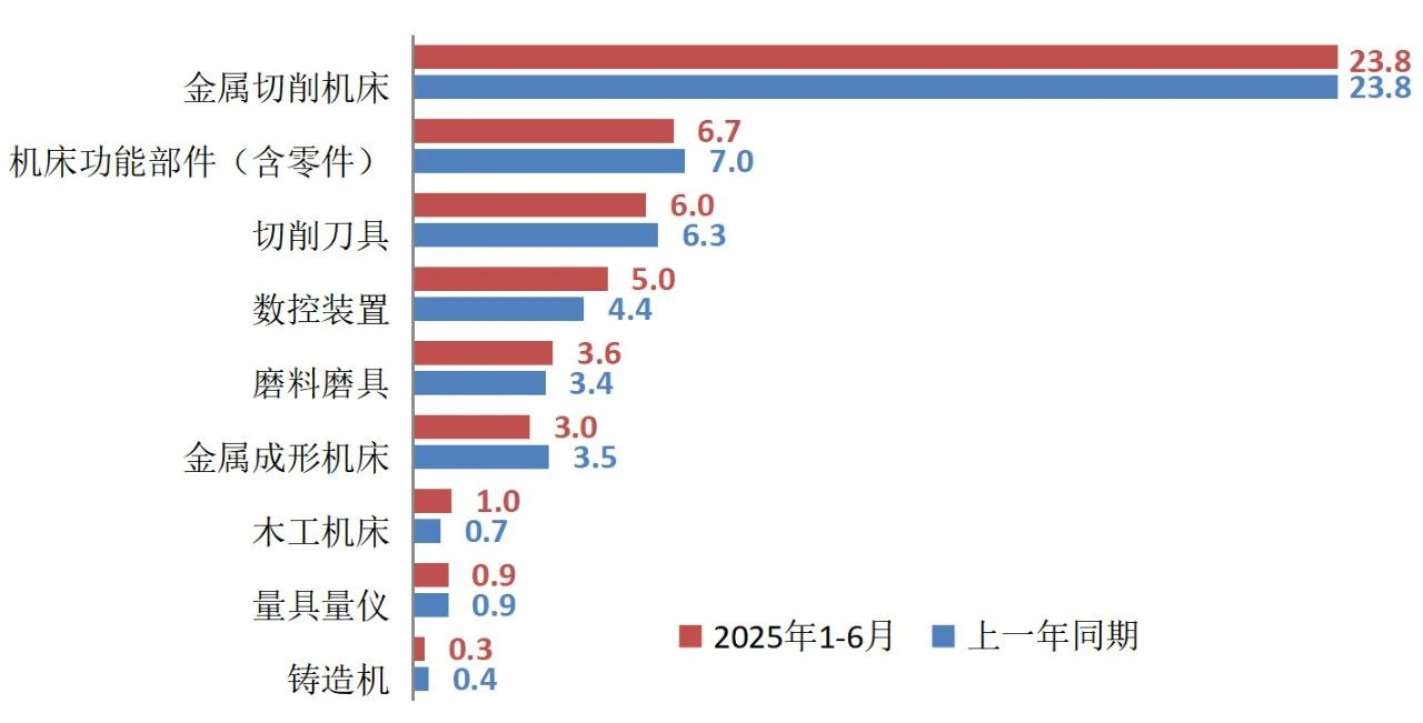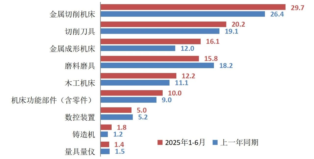 表1 2025年上半年機床工具行業及主要分行業的營業收入情況