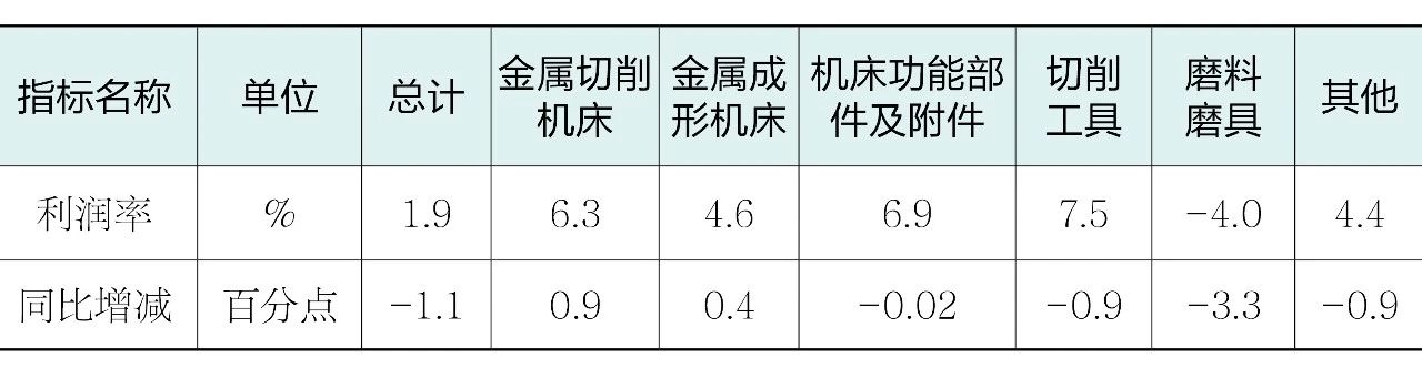表3 2025年上半年機床工具行業及主要分行業的利潤率情況